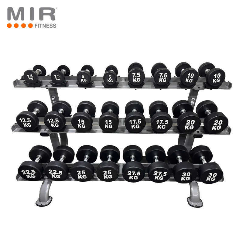 SET de Mancuernas de goma redondas SIN LOGO de 2,5 kg a 35 kg. TOTAL 525 KG (14 PARES)